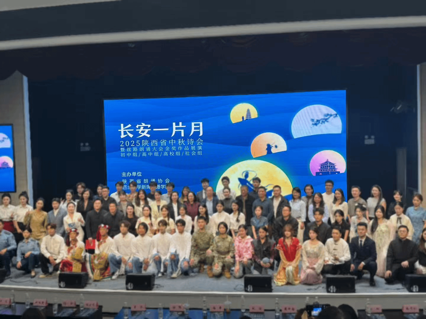 陕西省朗诵协会会长李倩,西北大学新闻传播学院党委书记孙录见,西安外国语大学播音系主任樊强等各界专家及各高校教师出席活动,陕西青年职业学院等十余所高校的播音与主持专业师生齐聚一堂,为活动增添青春活力与专业风采,共赴中秋诗意之约。