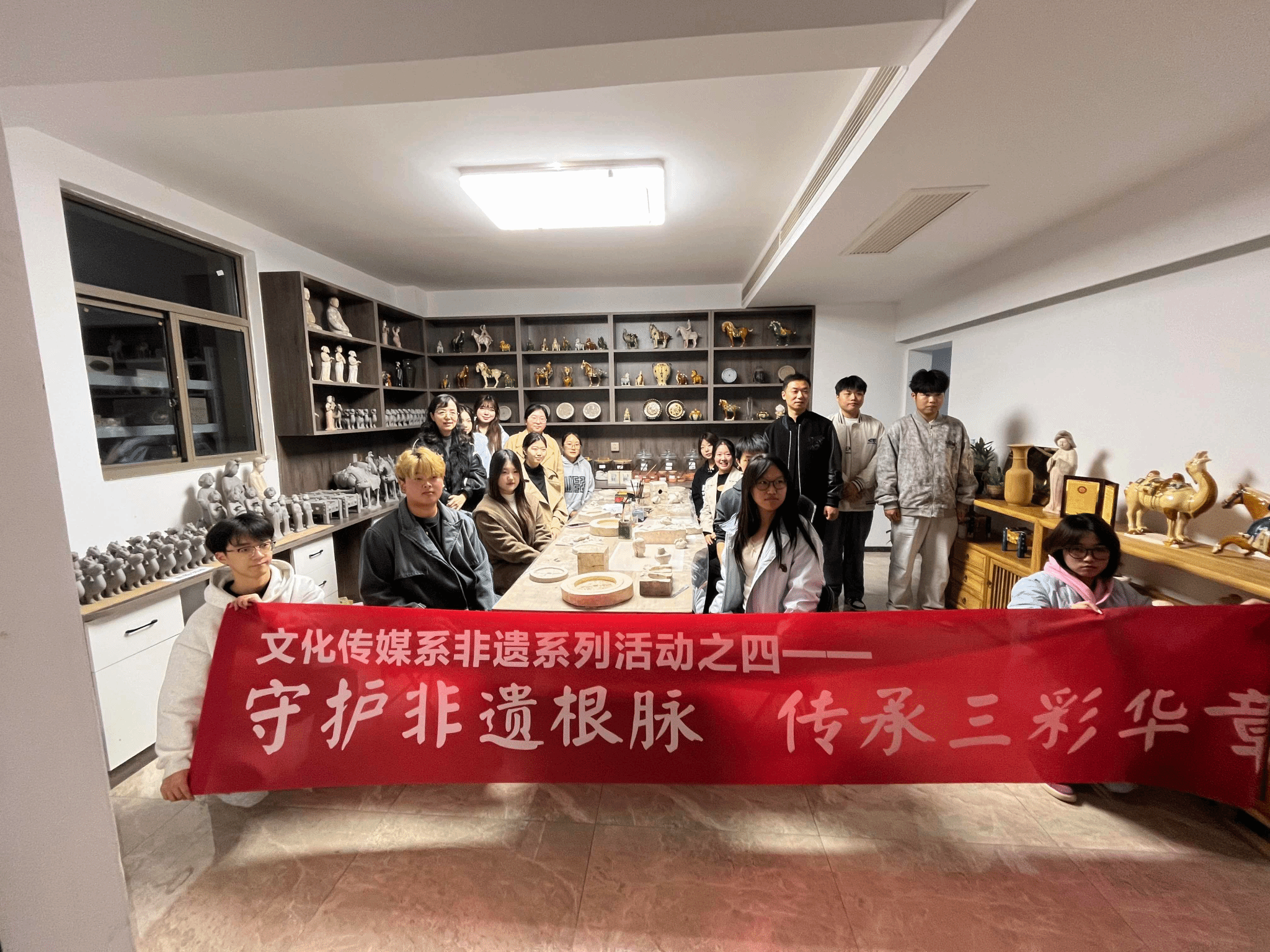 为传承中华优秀传统文化,守护非物质文化遗产,10月28日下午,文化传媒系特邀陕西省唐三彩非物质文化遗产传承人进校园,以“守护非遗根脉,传承三彩华章”为主题,举行“授聘、揭牌、体验”非遗文化活动。