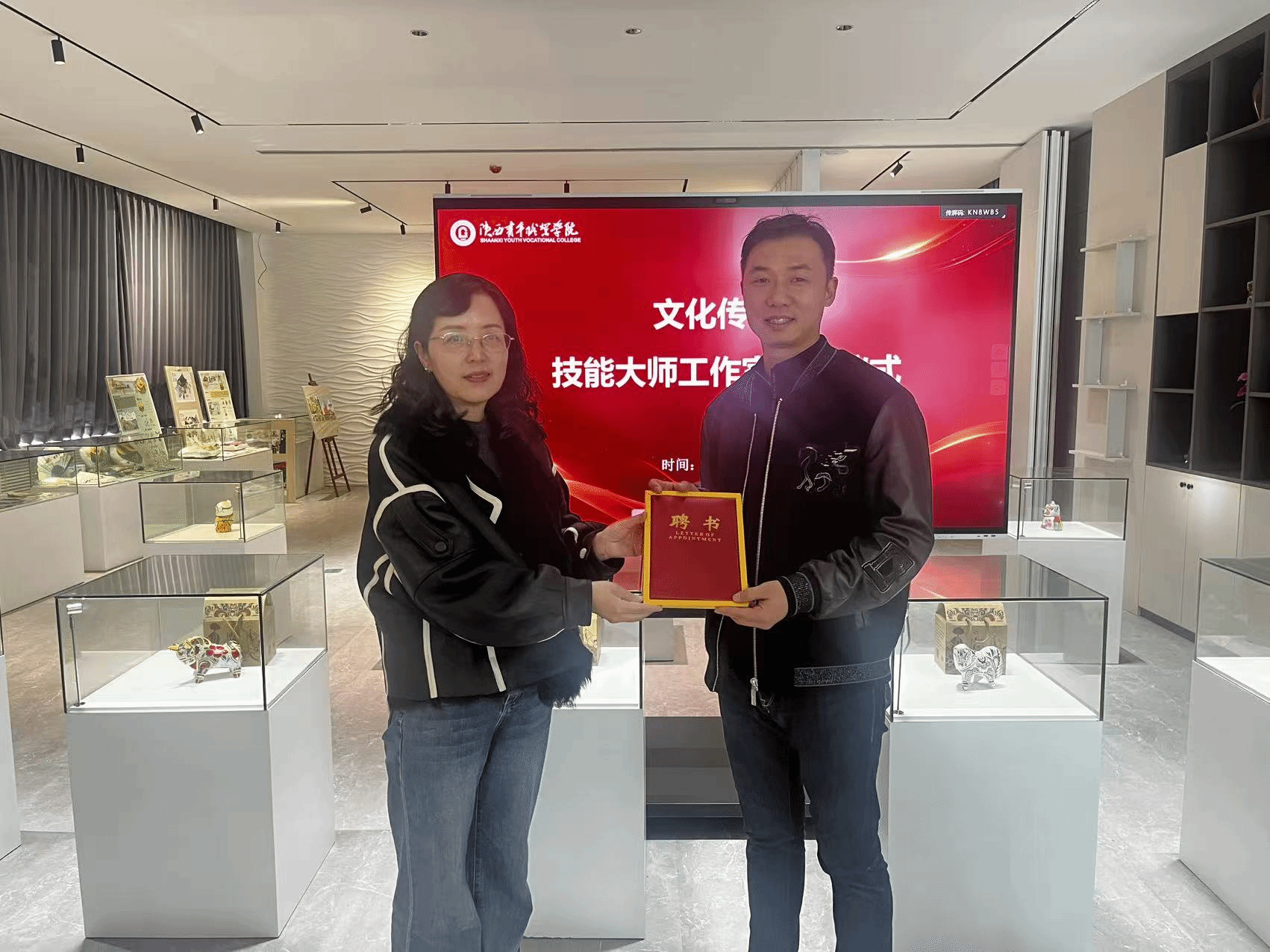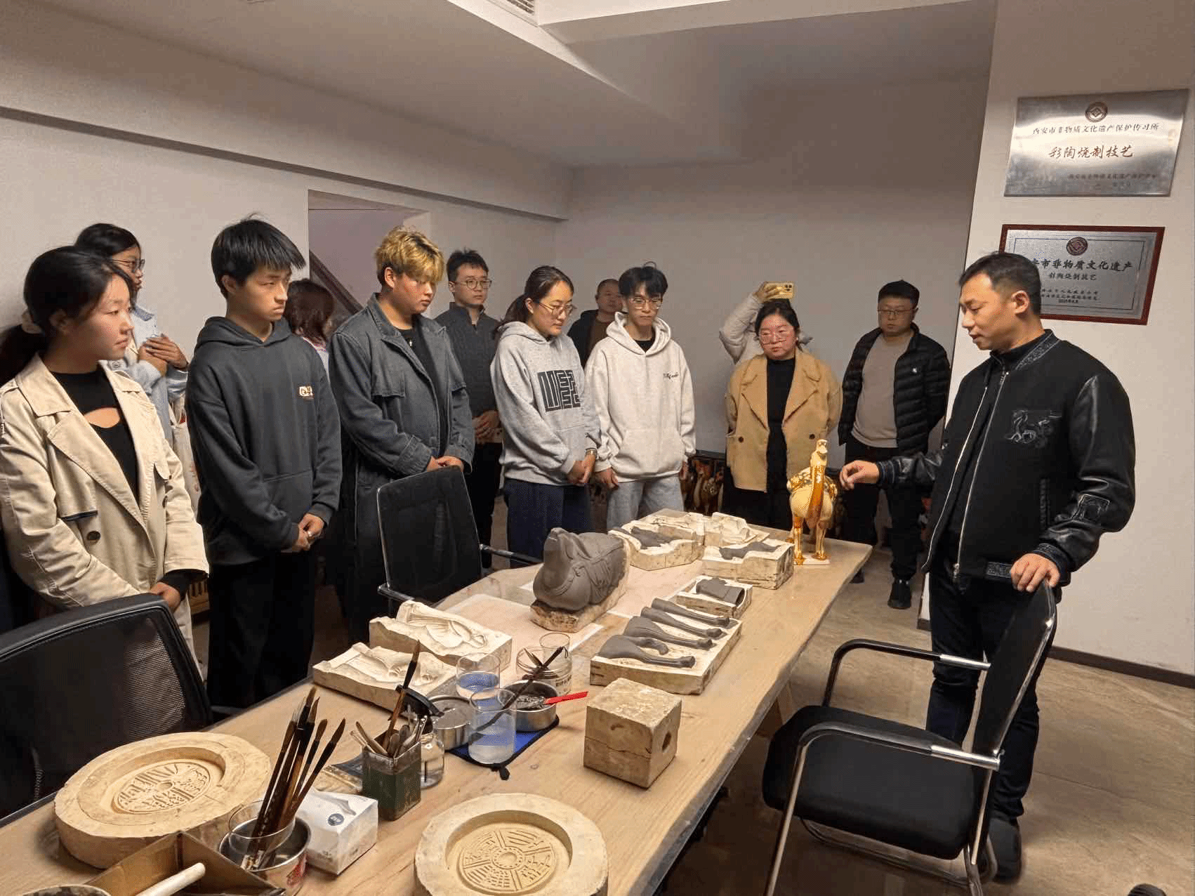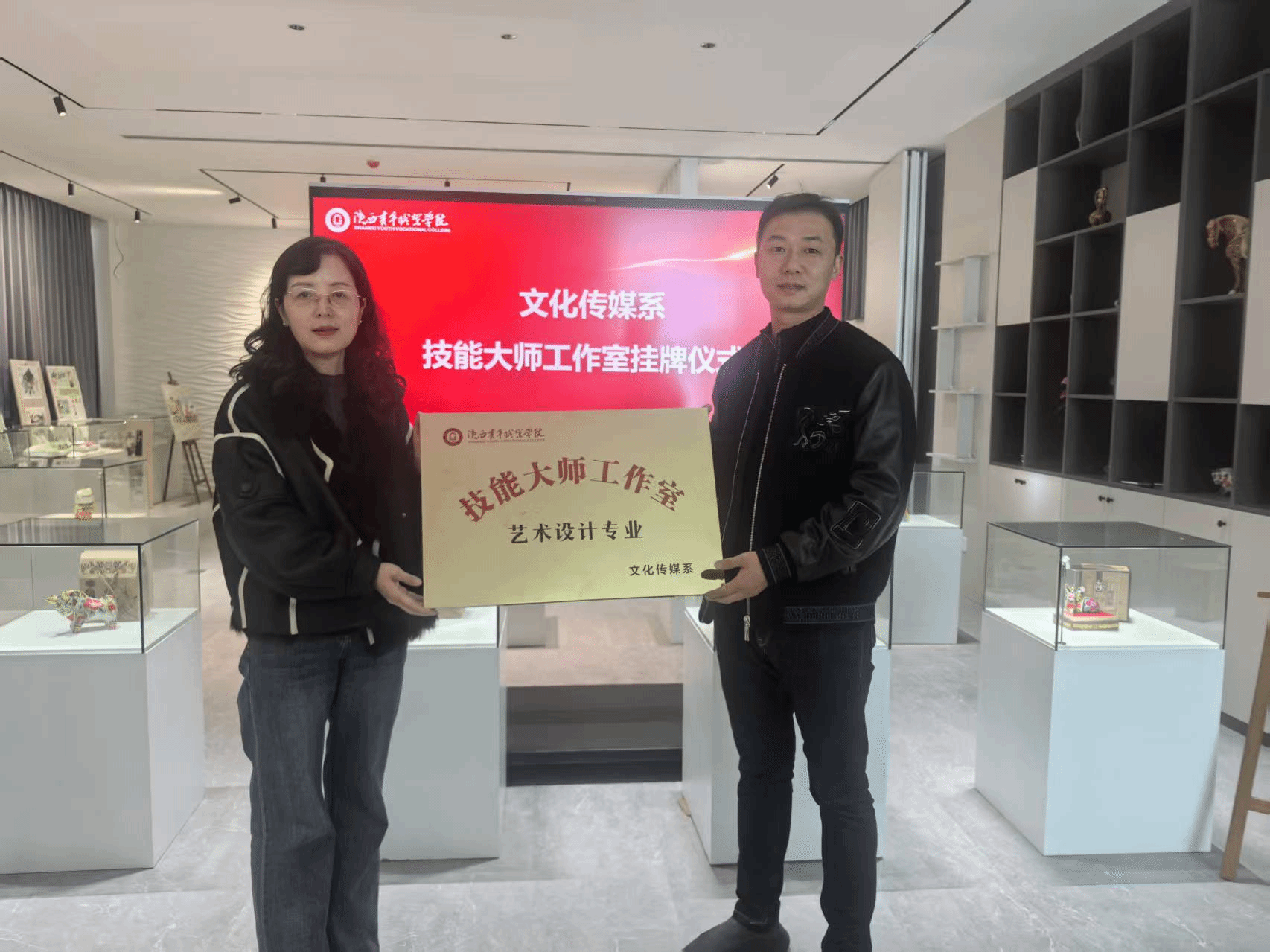 本次活动分为校内校外两个部分,在校内非遗文化传承基地举办了技能大师工作室成立仪式,文化传媒系教学工作负责人杜小峰老师主持并阐述了本次活动的深远意义,文化传媒系党总支书记、副主任王瑜老师代表系部向唐三彩传承大师谭晶伟老师颁发聘书,共同为“技能大师工作室”揭牌。谭老师结合自身多年的从业经历,围绕唐三彩的历史渊源与当代传承使命作了主题发言,其生动的讲述令在场师生受益匪浅。该工作室的成立,未来将作为教学、实践与研究的重要平台,为学生提供系统化、专业化的技能学习通道。