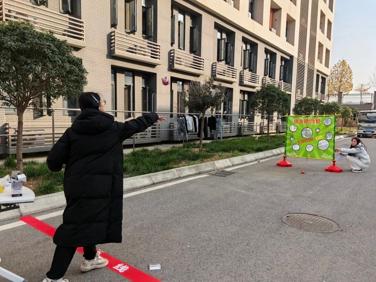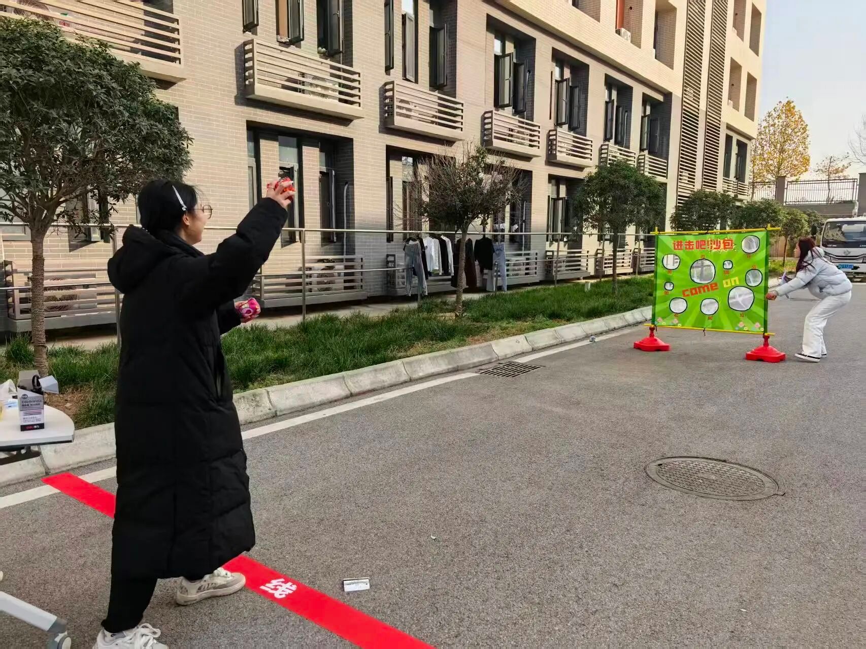 动态十足的沙包投掷网靶盘游戏成为现场最具人气的环节。志愿者提前划定安全投掷线,明确游戏规则。靶盘上不同区域标注的10至100分,激发了大家的挑战欲。活动现场,欢呼声、加油声此起彼伏,同学们排着整齐的队伍有序参与,有的凝神瞄准、精准投掷,有的互相支招、分享技巧,在轻松愉悦的氛围中释放了日常学业与生活的压力。卡皮巴拉考古挖掘盲盒与DIY种植盲盒的丰富选择,更让大家在收获成就感的同时,多了一份后续探索的期待。