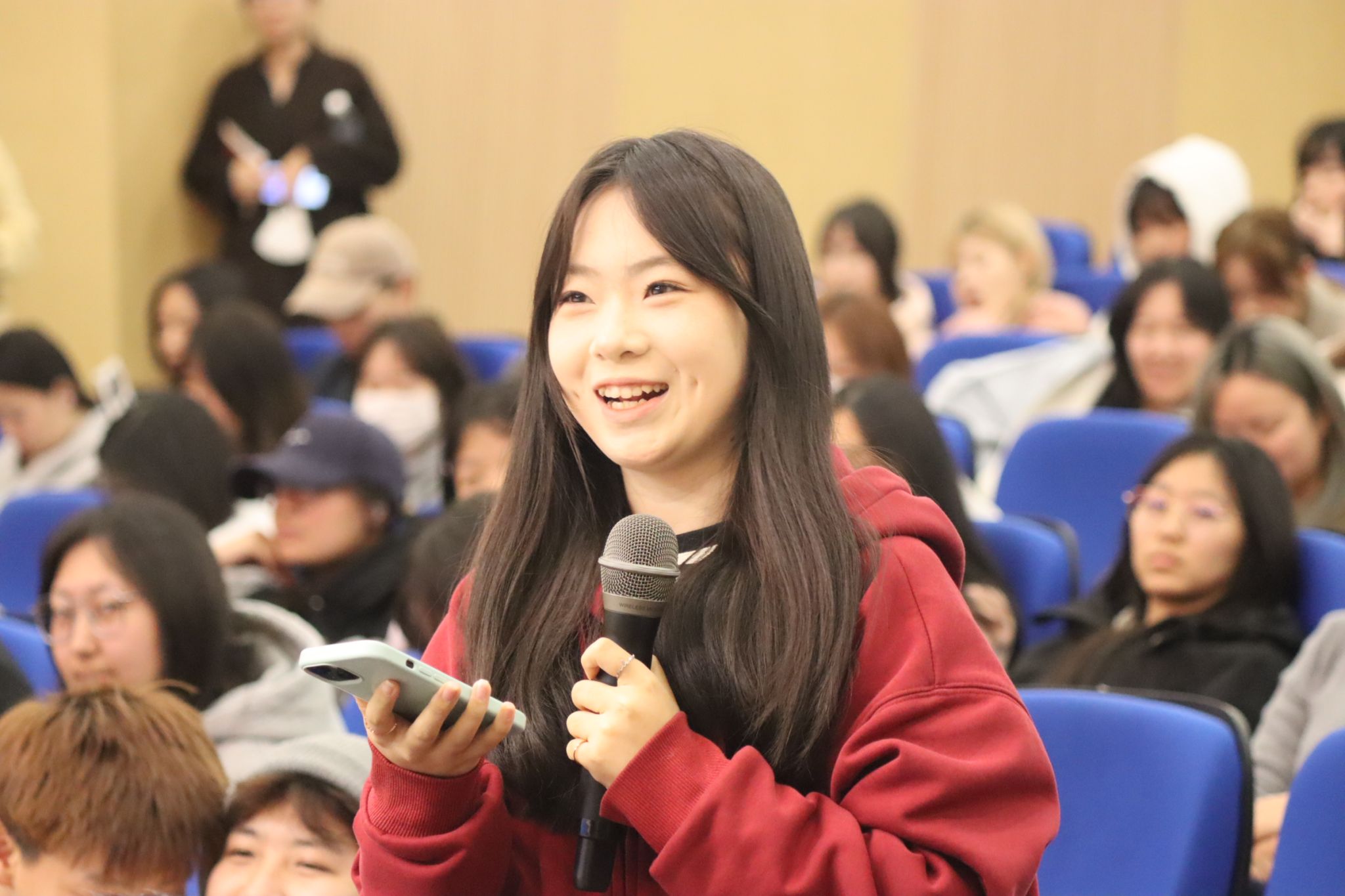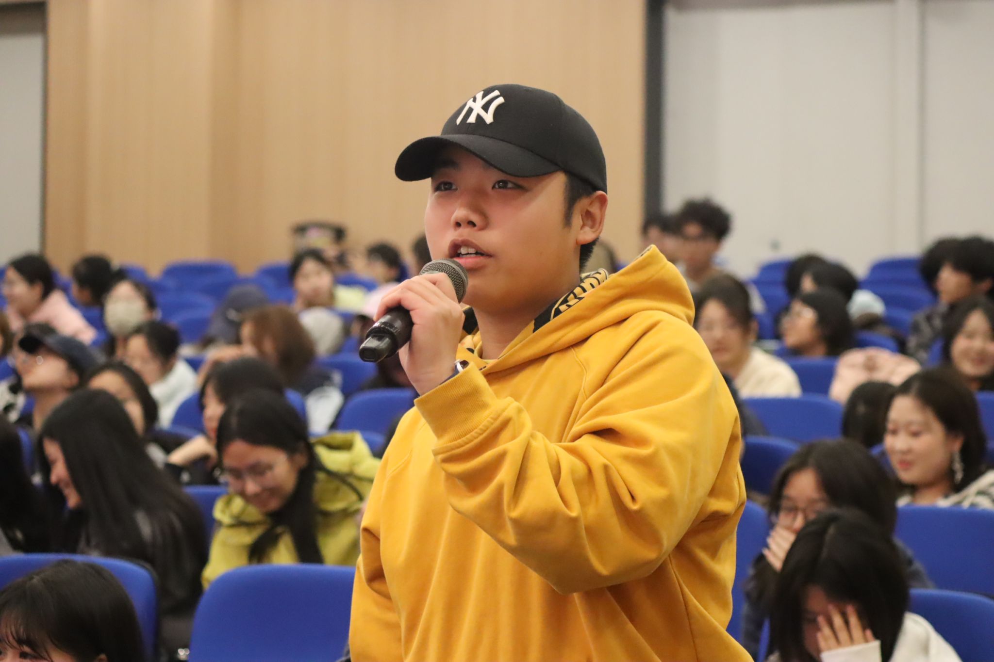 互动提问环节,同学们围绕专业学习困惑、短视频创作中流量与内容的平衡、乡村题材故事的挖掘方法、职业规划与创业准备等问题积极提问。王雷浩结合自身经历逐一耐心解答,为同学们拆解创作难点、梳理成长路径,现场交流氛围热烈融洽,让在场学子深受启发、获益匪浅。